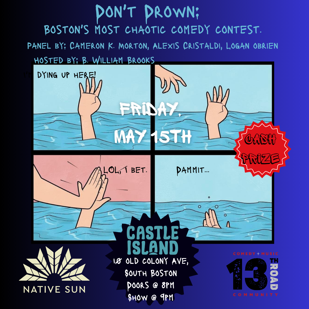 Get ready for a high-energy, anything-can-happen comedy contest where the laughs come fast and the chaos never lets up. From unexpected punchlines to hilarious mishaps, Don’t Drown is Boston’s most unpredictable comedy showdown—and we’re proud to be part of the action.