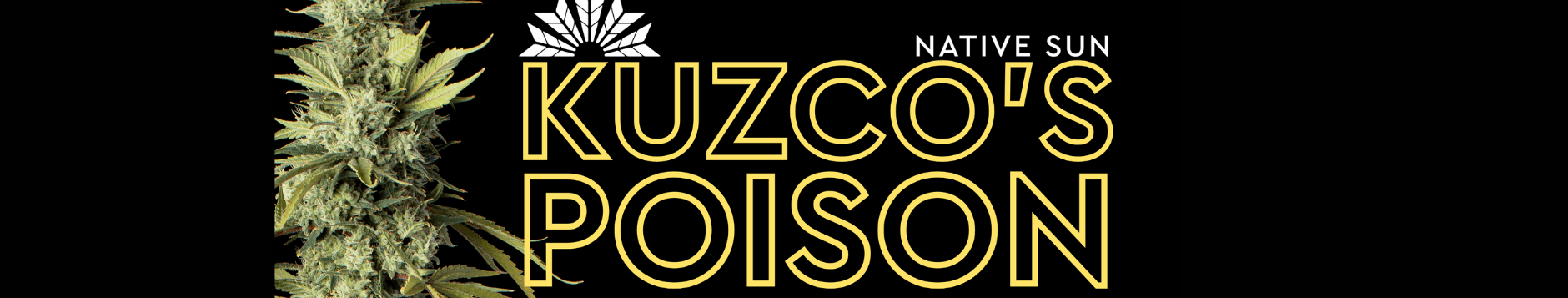 Native Sun offers Kuzco’s Poison in 14g pre-ground pouches—perfect for rolling or packing on the fly—and Disposable Cured Resin Vapes available at three locations.
